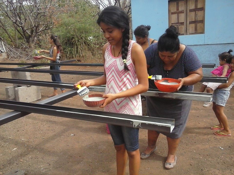 Un grupo de varones preparaba el terreno, quitando troncos en la zona donde se construirá el templo. Otro grupo, mayoritariamente de mujeres (adolescentes y adultas), pintaba los perlines del templo. Y un tercer grupo, no menos importante solo por mencionarlo al final, preparaba alimentos para todos los obreros y obreras.